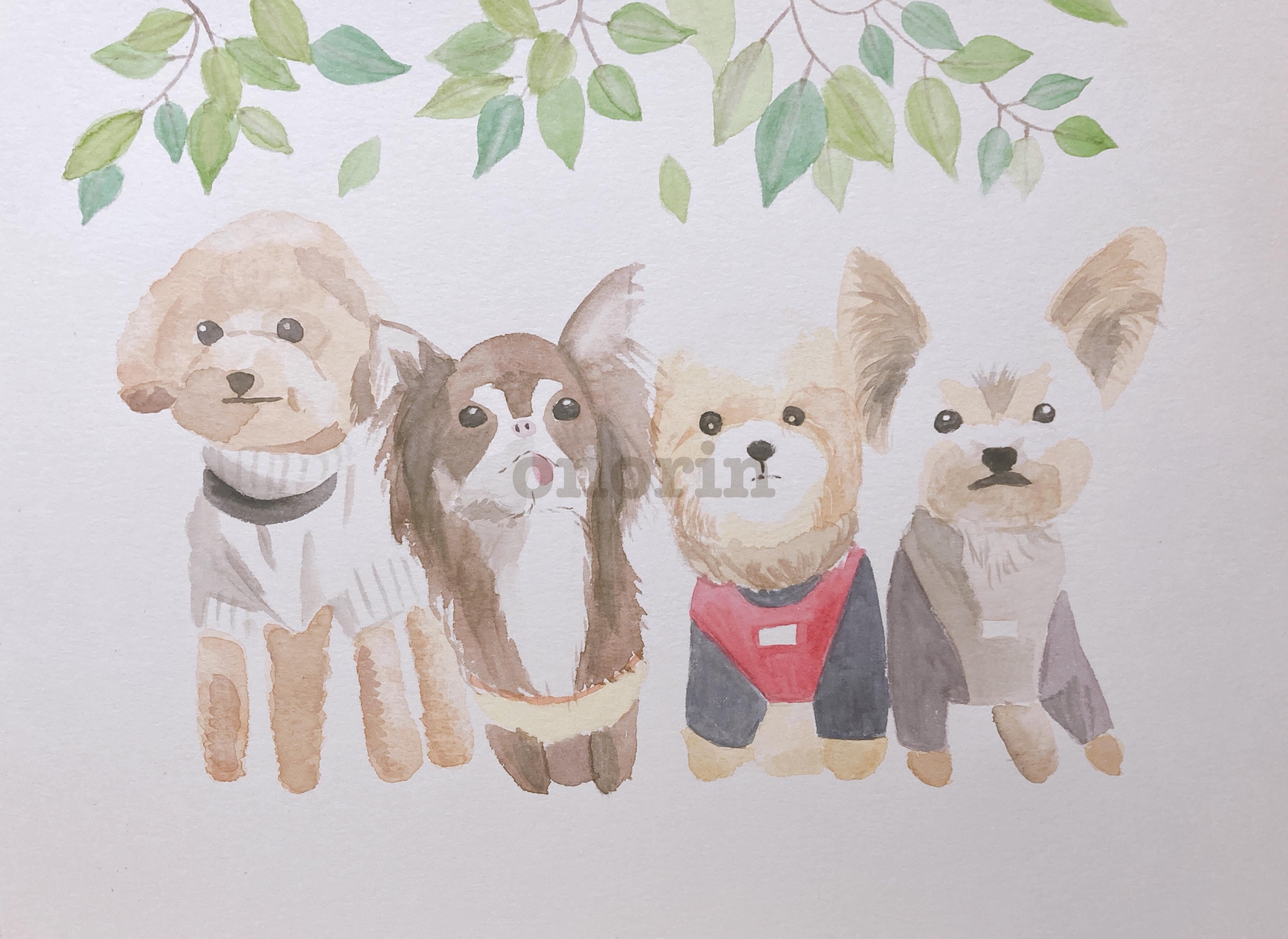 水彩絵の具でclester画用紙に描いたものをL版写真サイズにフォトプリントしています。